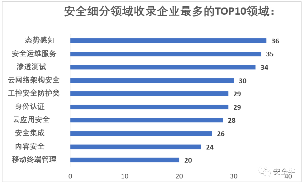 4、第七版全景圖報告安全細分領域收錄企業(yè)最多的TOP10領域為: